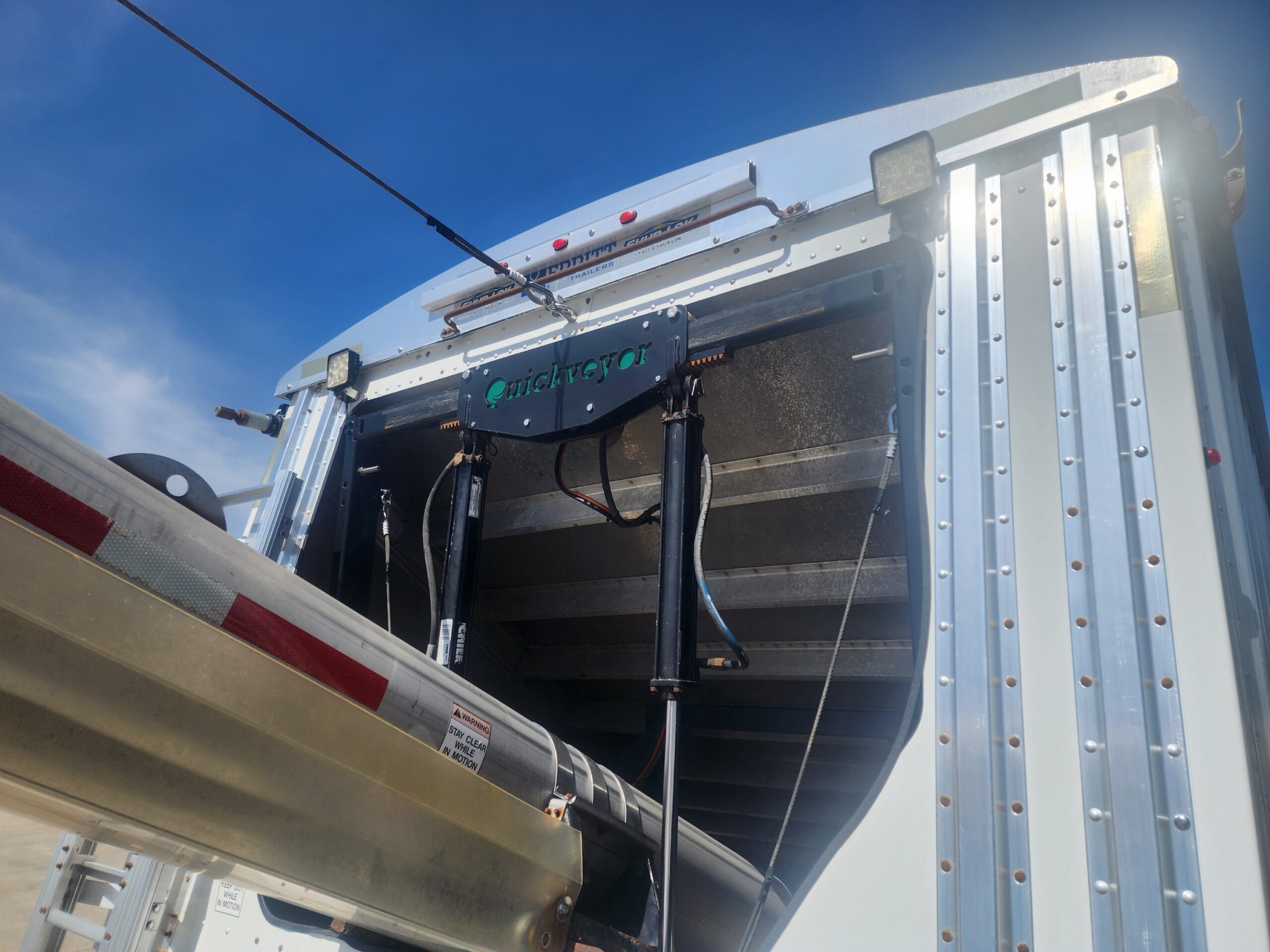 The Quickveyor fertilizer and seed conveyor trailer was the first to combine an advanced all stainless steel conveyor system with a tubular rear conveyor. Recent updates have resulted in a cutting edge riveted design, higher lift height, durable aluminum hood, optional Quick Cleanout Windows, providing you the strongest design, fastest rate of delivery, largest payload capacity all with maximum corrosion resistance.
